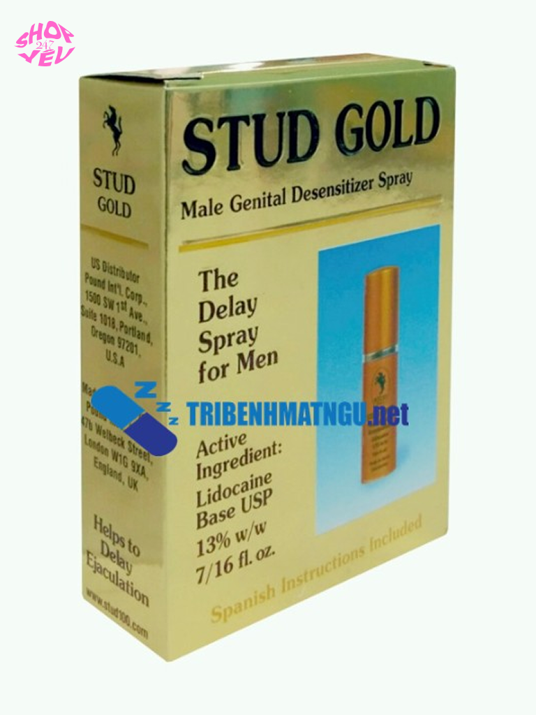 Stud Gold là sản phẩm hỗ trợ sinh lý nam dạng xịt, có xuất xứ từ Anh Quốc, được sản xuất bởi Pound International Ltd — một đơn vị có nhiều năm kinh nghiệm trong lĩnh vực sản xuất các sản phẩm chăm sóc sức khỏe tình dục. Sản phẩm thuộc dòng chai xịt chuyên dụng hỗ trợ nam giới kiểm soát tình trạng xuất tinh sớm, từ đó kéo dài thời gian quan hệ và cải thiện chất lượng đời sống tình dục.